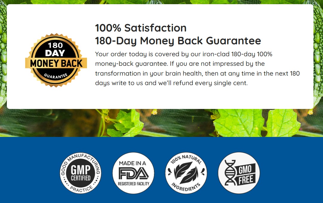 Each order includes a 180-day, 100% money-back guarantee on unused bottles.